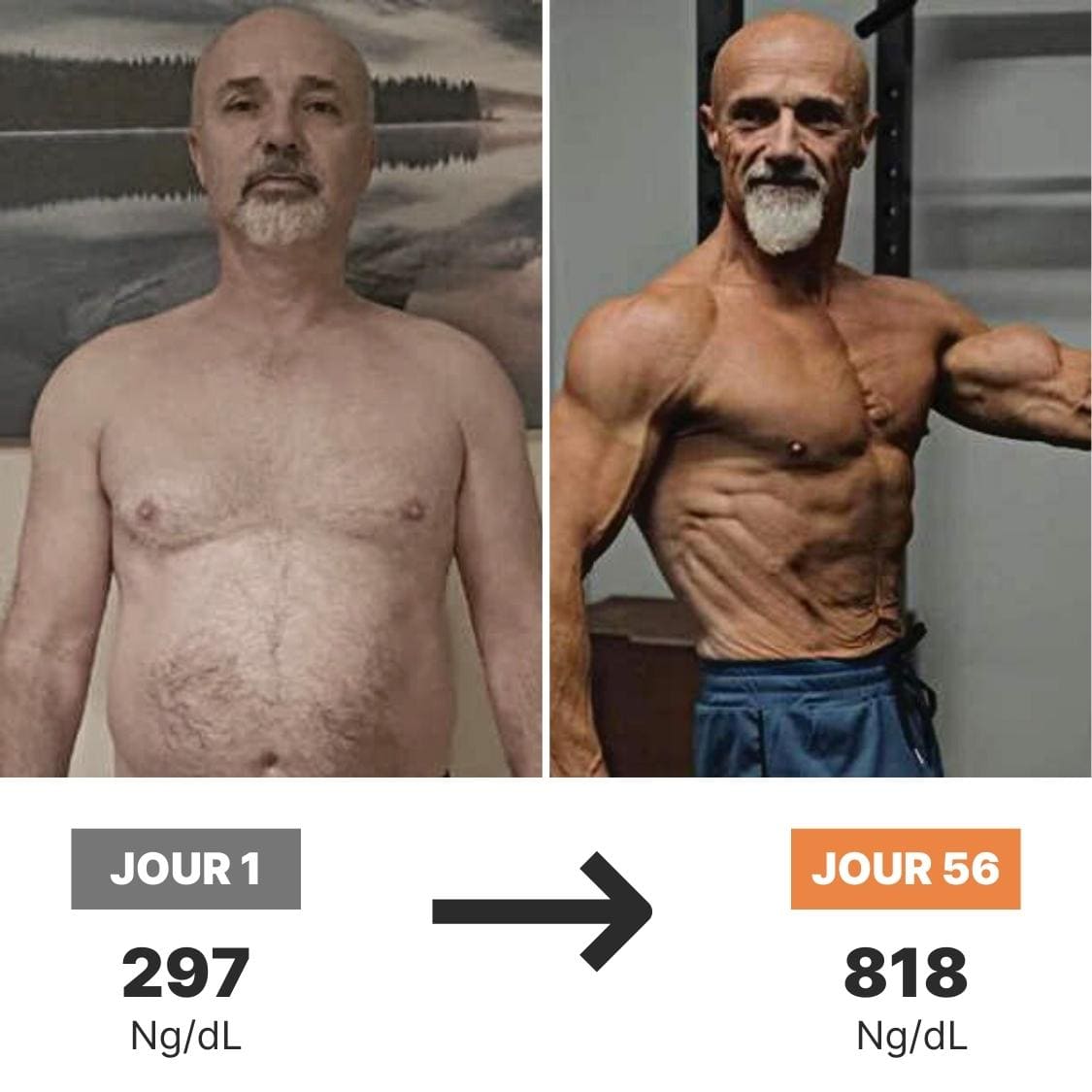 Taux de Testostérone élevé pour bien-être, vitalité, productivité, et métabolisme optimal.